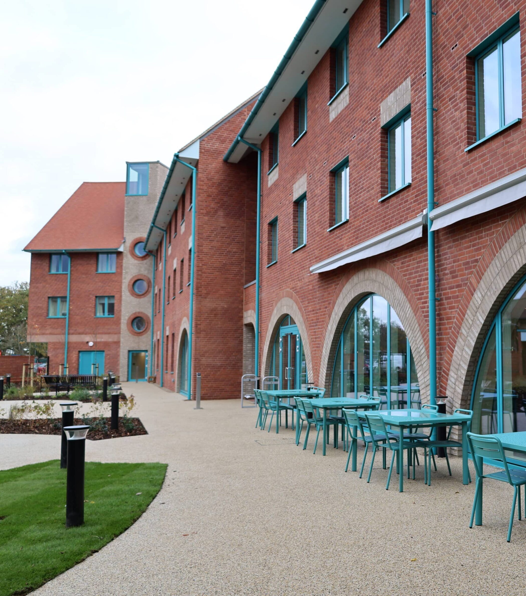 A new Benugo Café acts as a hub for boarding and day students, providing a social gathering space for Sixth Form students, a study space and group meeting venue, and features a covered arcade and access to the courtyard and terrace.