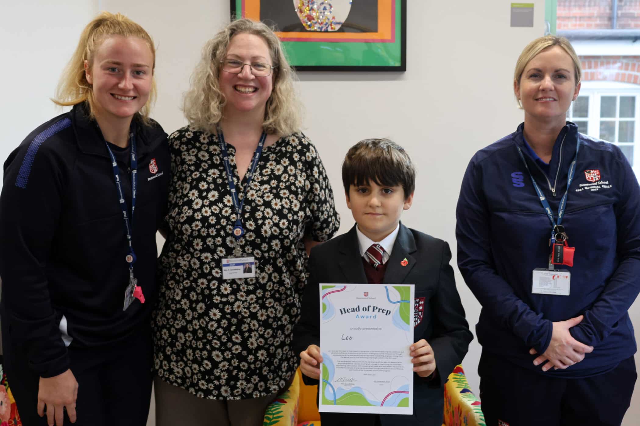 This week, Leo received a Head of Prep Award in recognition of his remarkable progress, resilience, and growing confidence in swimming. Leo found it challenging to enter the pool, but through perseverance and a positive attitude, he has made outstanding progress, moving from the learner pool to now swimming a full length, aided in the 25m pool.