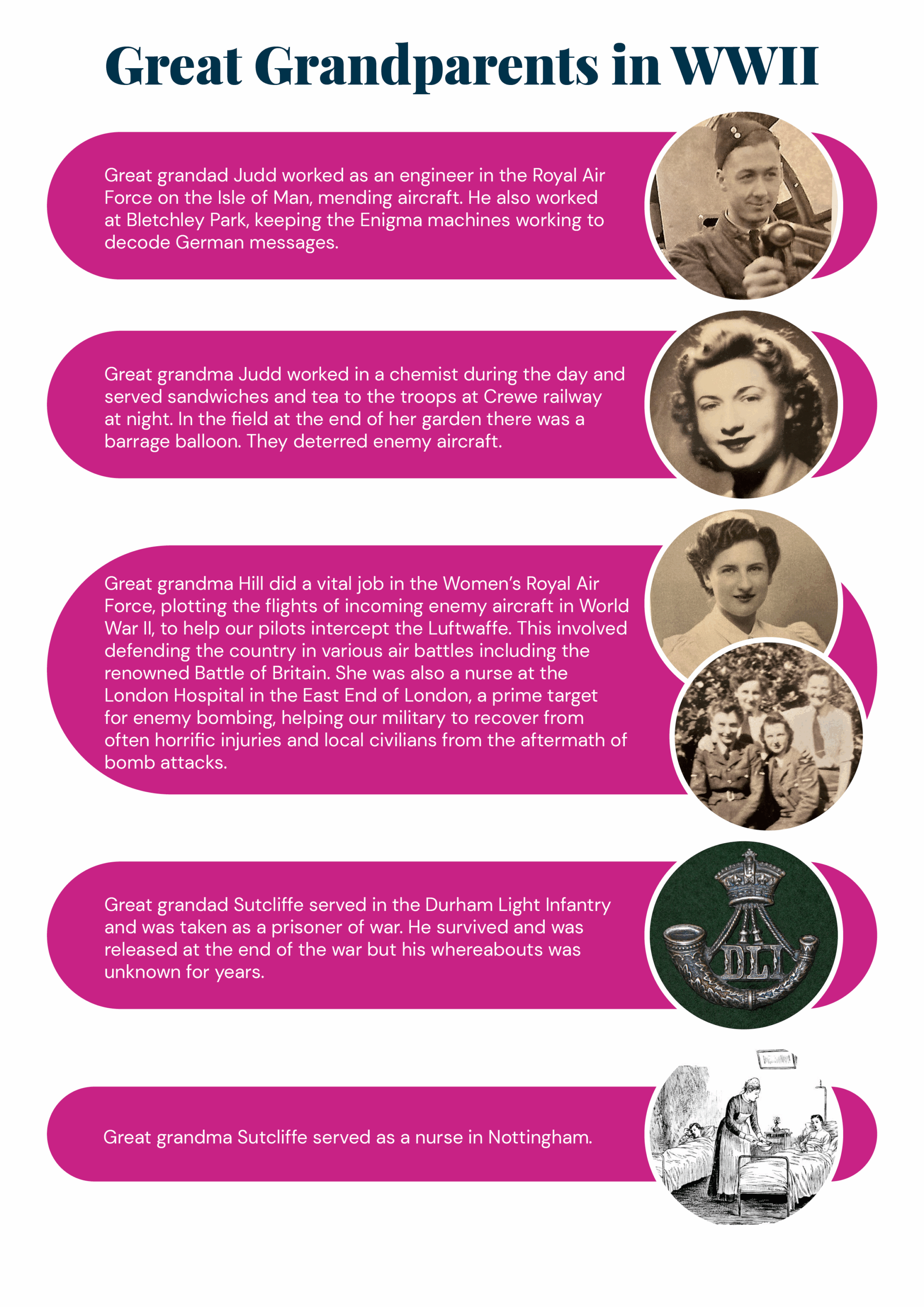 Oliver and Thomas, twins in Year 5, have various great grandparents and great great grandparents who served in some way in WWII or WWI. Here we provide a dive into their family connections and why they were both so proud to be our wreath layers this year.