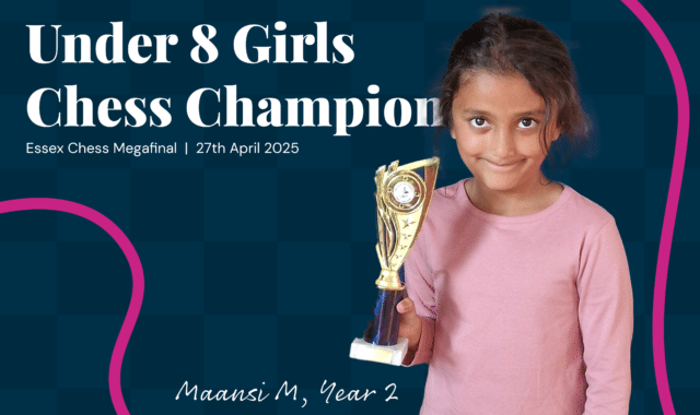 Another Year 2 success story to celebrate is that of six-year-old Maansi. Maansi plays in the School chess team, which is made up of pupils from Year 2 to Upper 6th. At the Essex Chess Megafinal last weekend, which included Joshua from Year 5 and Krishnav from Year 4, not only have all 3 Prep pupils qualified for the Southern Gigafinal in July but Maansi is now the Under 8 Girls’ Champion. We are so proud of her dedication and the thoughtful way in which she plays.